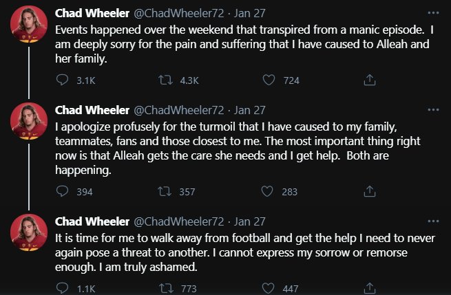 Wheeler not only resisted arrest of responding law enforcement personnel, but had the gall to beg for forgiveness on twitter. Wheeler also claimed the incident was “manic episode”.