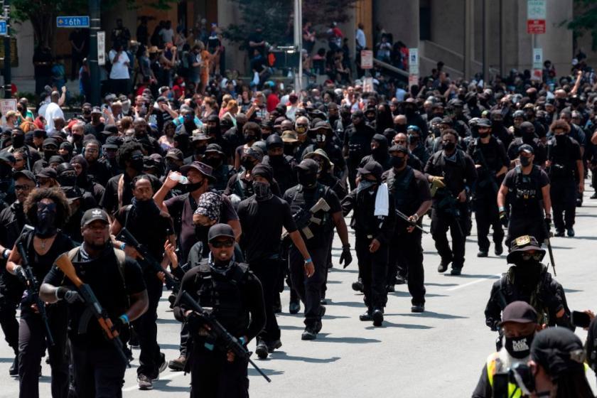 Black protestors stage show of force in Dallas in response to white supremacist terroism, Texas, USA 2018