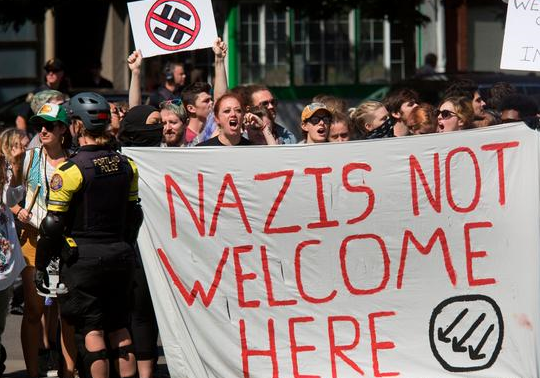Portland anti-white supremacist protestors hold rally outside of local precinct