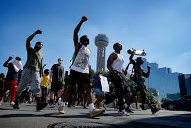Black protestors stage show of force in Dallas in response to white supremacist terroism, Texas, USA 2018