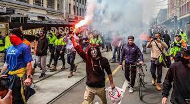 In Melbourne, the Aussies have decided to get down right crazy, setting fire to portions of the city as a the government announces the 4th night of curfews. Workers and demonstrators alike have injured dozens of cops, with at least 1 pig allegedly in critical condition.