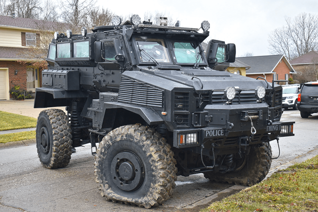 Officers can also be seen standing off with protestors behind armored vehicles that resemble the Lenco Bearcat, and may have been provided them by the Defense Logistics Agency, a federally originated agency that provides a surplus of battle equipment to the nation’s white supremacist in times of upheaval.