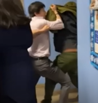De Leon insists that Reedy made “intimidating gestures” towards him despite the footage never showing the protesters physically assaulting him.