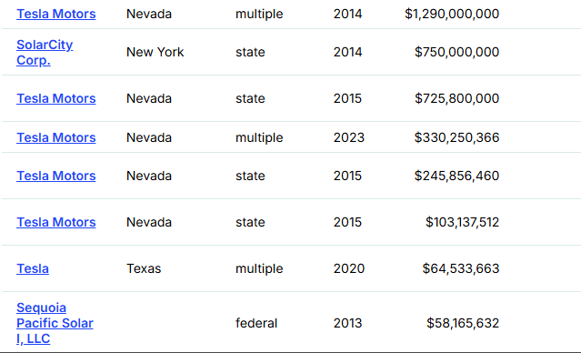 Here’s a quick list of Musk’s numerous subsidies for his different companies, it reads like a ponzi scheme.