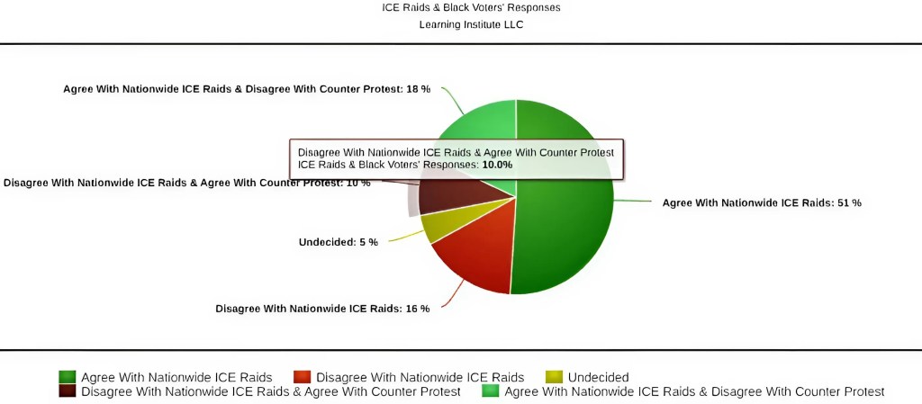New data from the Learning Institute LLC confirmed that out of 3600 total Black participants, all of which are also registered voters, gave responses concerning the recent ICE raid and counter-protest.