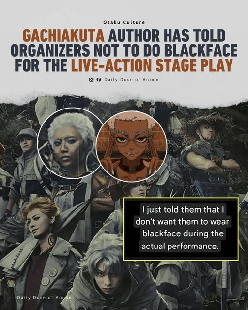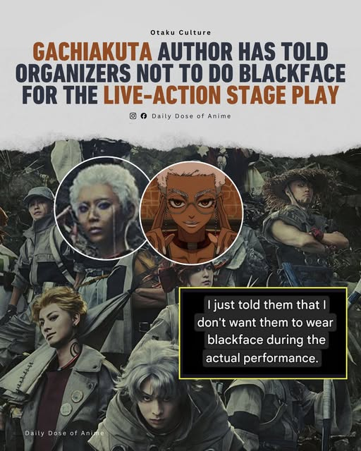 Several characters in Gachiakuta are drawn with unmistakably dark skin, textured hair, and visual cues that clearly read as Black to global audiences. When the stage adaptation revealed that these roles would be played by Japanese actors—possibly using darker makeup—it crossed a line. For Black fans, this wasn’t theoretical. It was familiar.