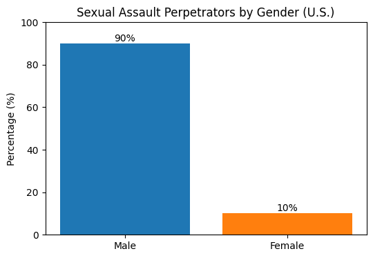 - The overwhelming majority of sexual assault perpetrators are male