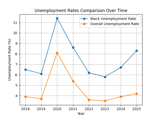 - In late 2025, Black unemployment reached 8.3%, significantly higher than overall levels