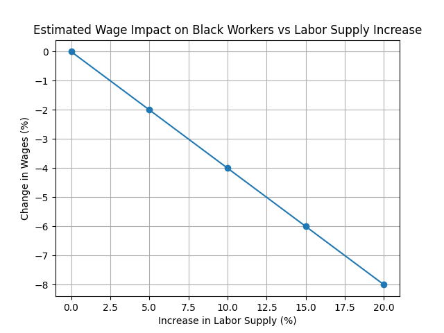 - A 2.5% wage decline for Black workers per 10% labor supply increase