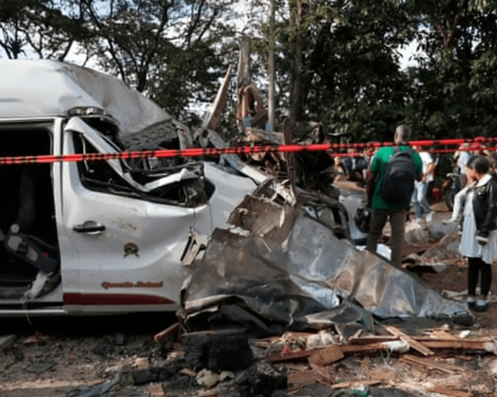 La explosión arrancó el silencio con una violencia brutal. Restos retorcidos del vehículo, vidrios esparcidos y un aire cargado de humo marcaron el lugar donde, segundos antes, viajaban personas comunes. Testigos relatan un estallido repentino, un golpe seco que convirtió un viaje cotidiano en una escena de caos absoluto.